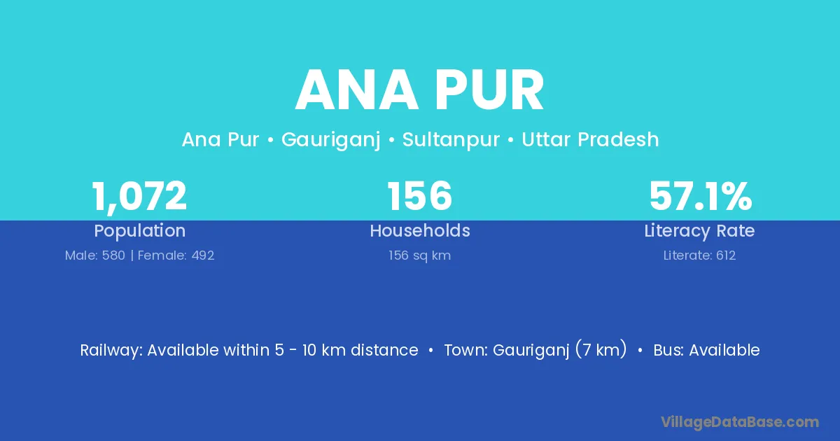 Gauriganj (7 km) is the nearest town to Ana Pur village for major economic activities and is located approximately 7 km away.