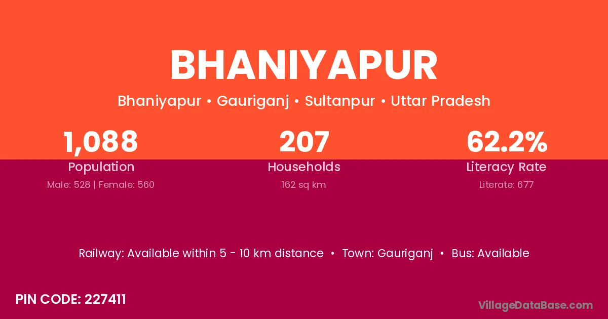 Bhaniyapur village has a total population of 1,088 people, of which 528 are males and 560 are females.