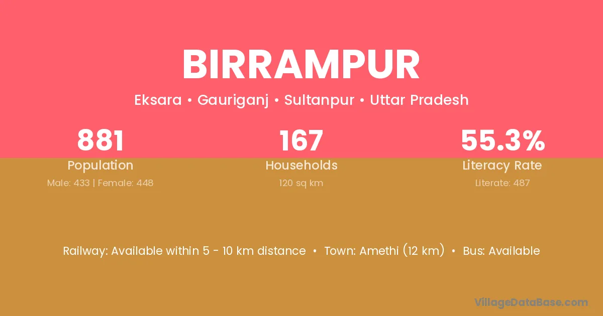 Amethi (12 km) is the nearest town to Birrampur village for major economic activities and is located approximately 12 km away.