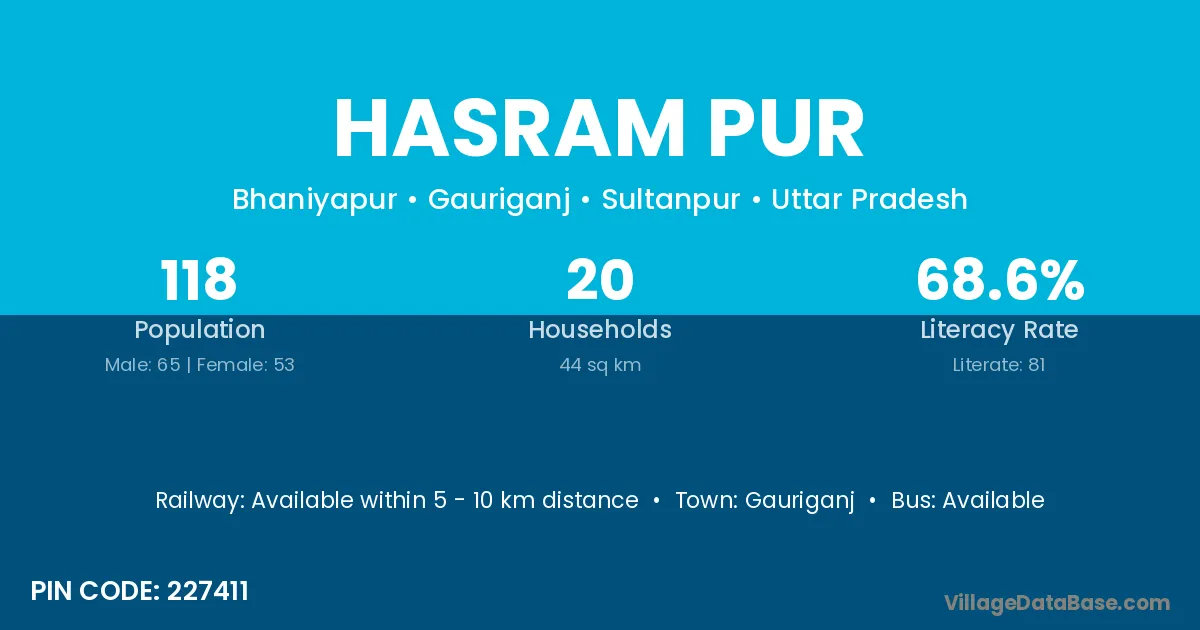 According to Census 2011 information, the village code of Hasram Pur village is 227411.