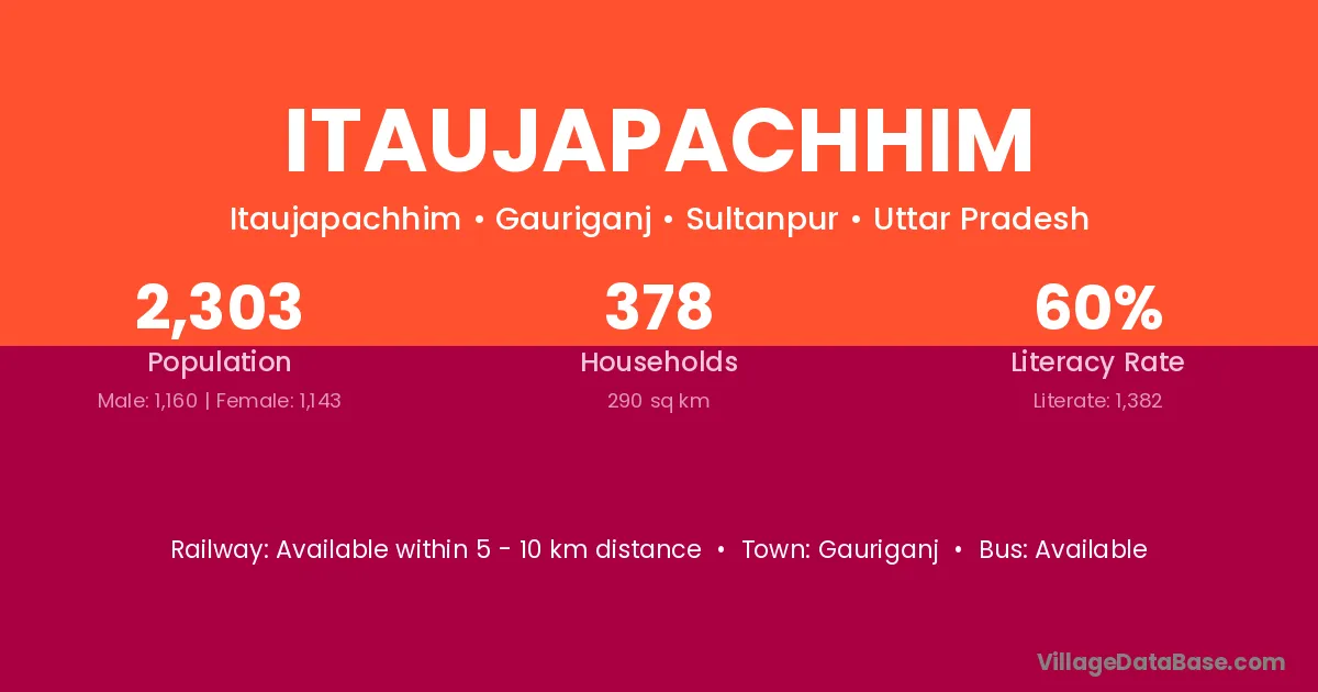 Itaujapachhim village has a total population of 2,303 people, of which 1,160 are males and 1,143 are females.