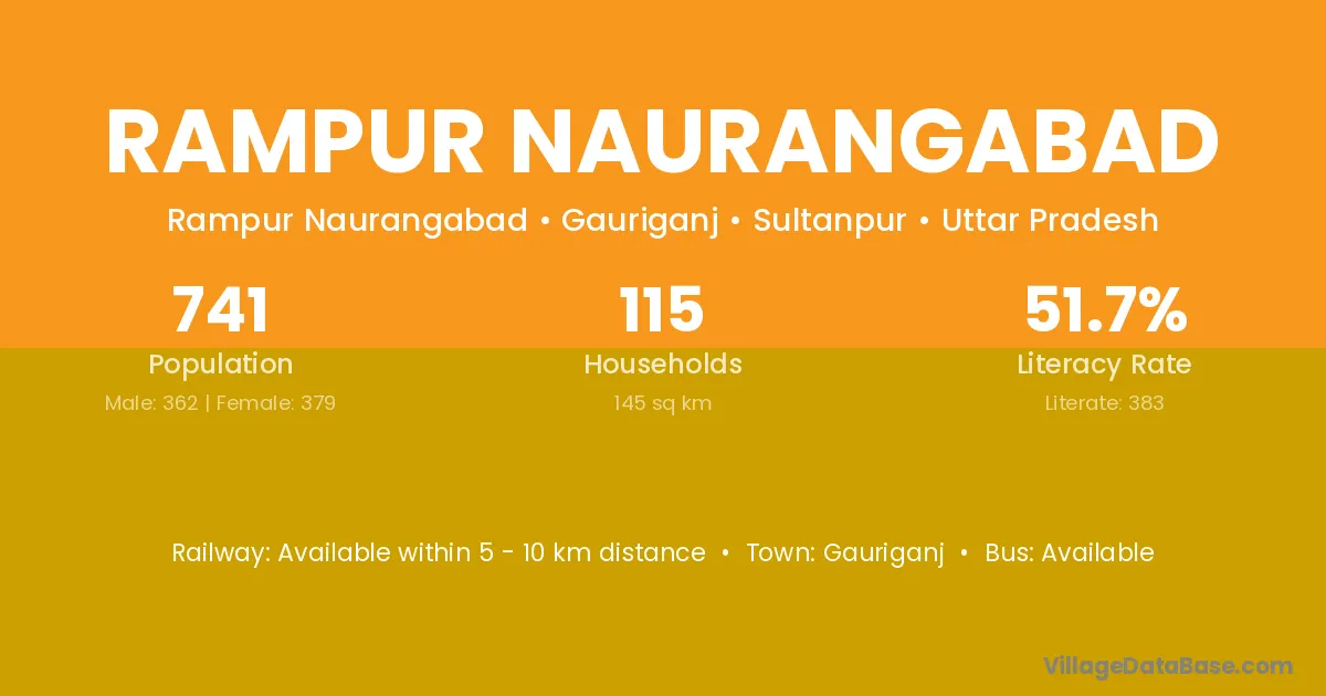 Rampur Naurangabad village has a total population of 741 people, of which 362 are males and 379 are females.