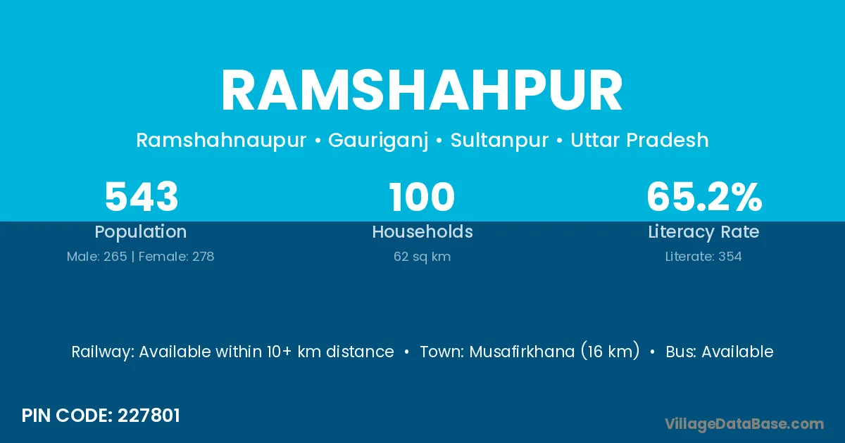 Musafirkhana (16 km) is the nearest town to Ramshahpur village for major economic activities and is located approximately 16 km away.