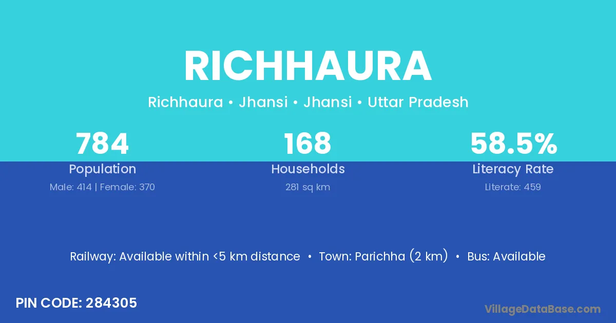 Richhaura village has a total population of 1,275 people, of which 667 are males and 608 are females.