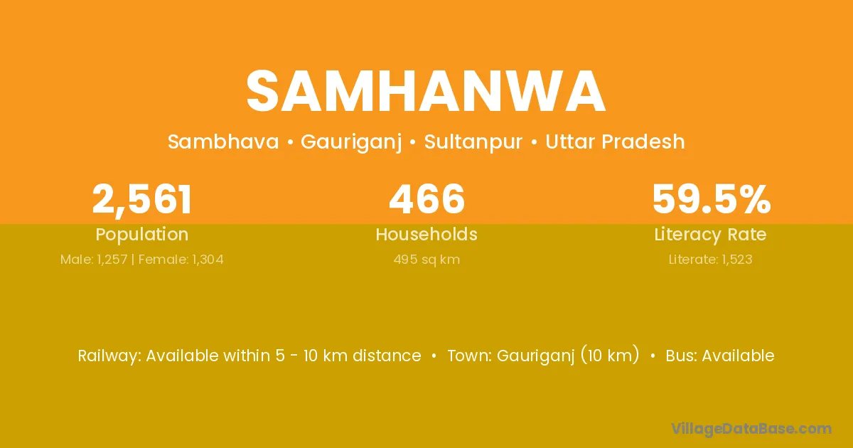 Gauriganj (10 km) is the nearest town to Samhanwa village for major economic activities and is located approximately 10 km away.