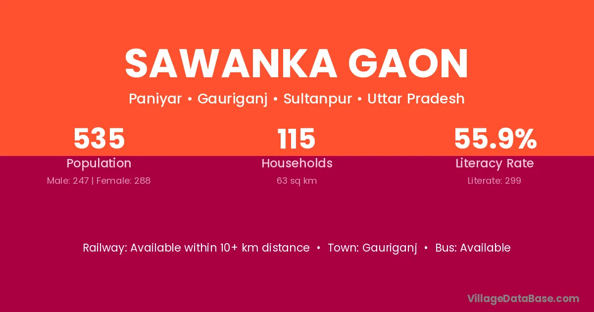 Sawanka Gaon village has a total population of 535 people, of which 247 are males and 288 are females.