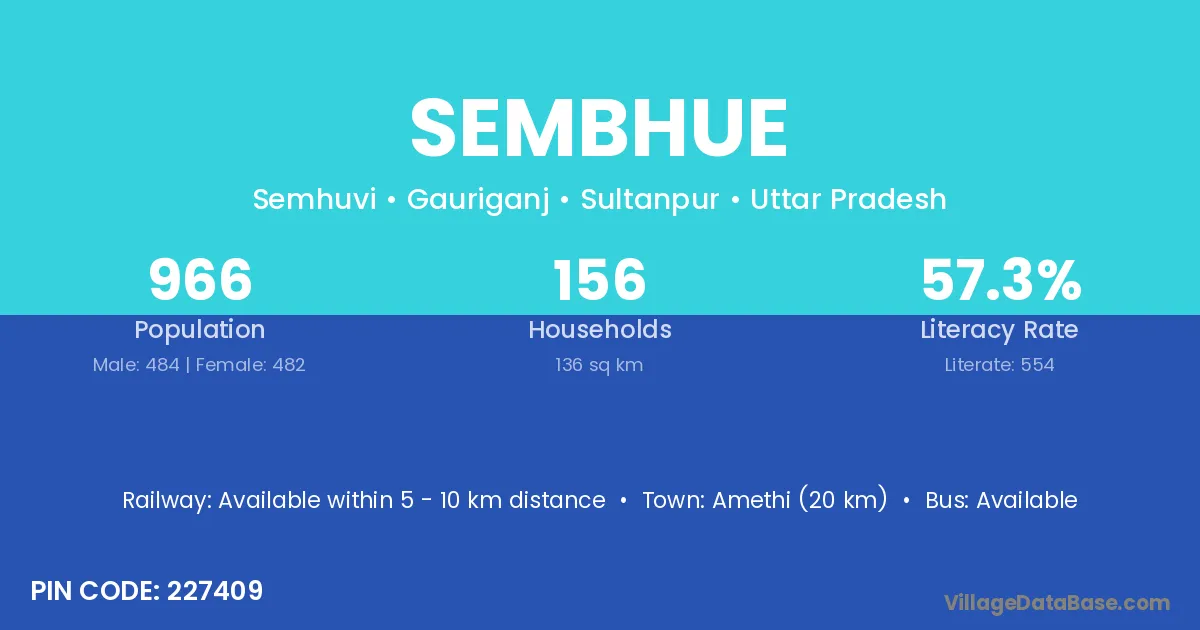 Amethi (20 km) is the nearest town to Sembhue village for major economic activities and is located approximately 20 km away.