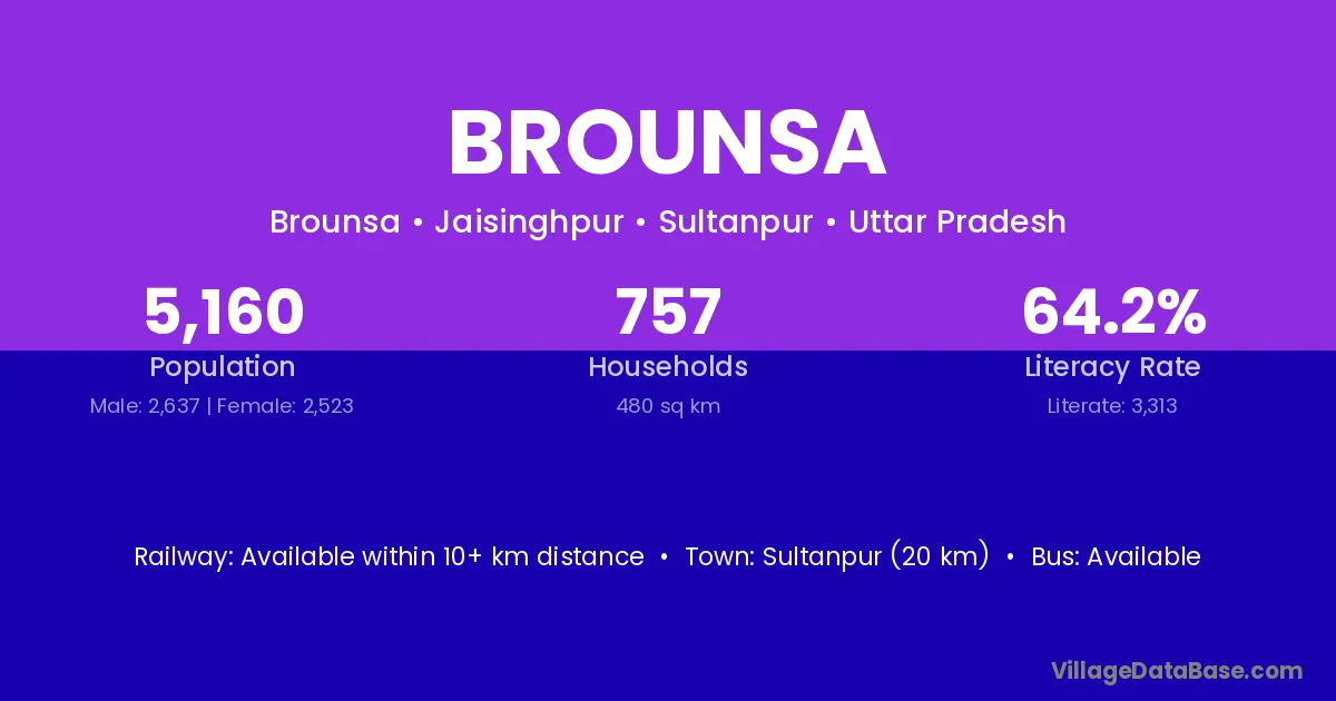 Sultanpur (20 km) is the nearest town to Brounsa village for major economic activities and is located approximately 20 km away.