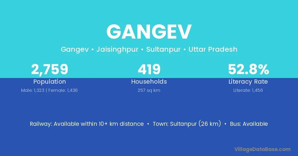 Sultanpur (26 km) is the nearest town to Gangev village for major economic activities and is located approximately 26 km away.