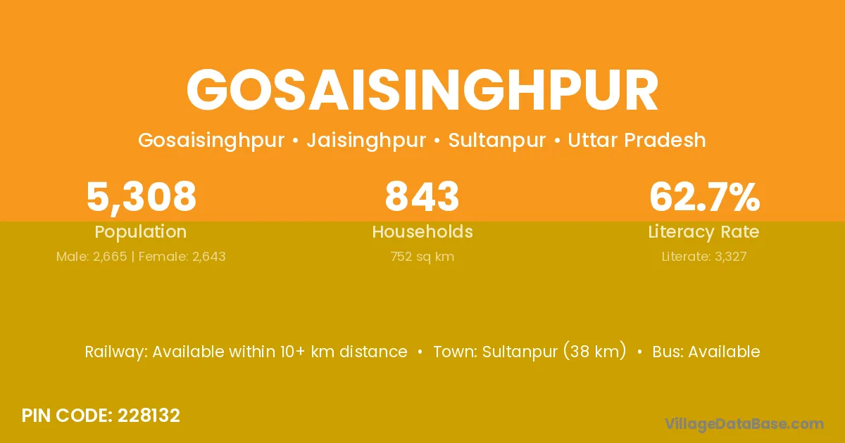 Sultanpur (38 km) is the nearest town to Gosaisinghpur village for major economic activities and is located approximately 38 km away.
