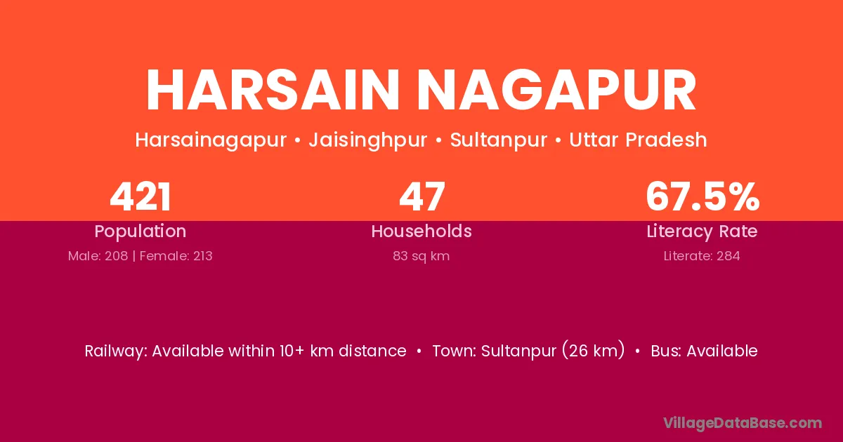 Sultanpur (26 km) is the nearest town to Harsain Nagapur village for major economic activities and is located approximately 26 km away.