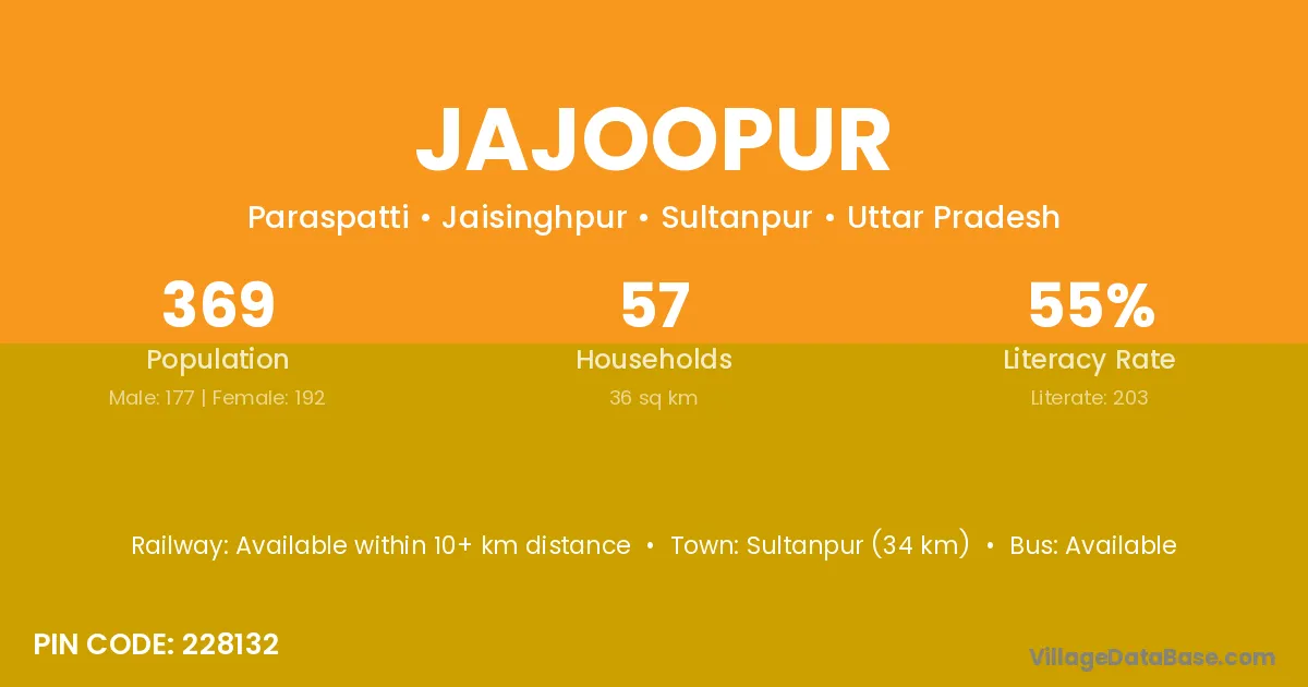Sultanpur (34 km) is the nearest town to Jajoopur village for major economic activities and is located approximately 34 km away.