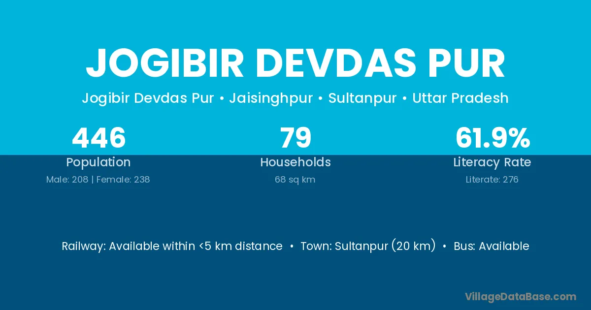 Sultanpur (20 km) is the nearest town to Jogibir Devdas Pur village for major economic activities and is located approximately 20 km away.
