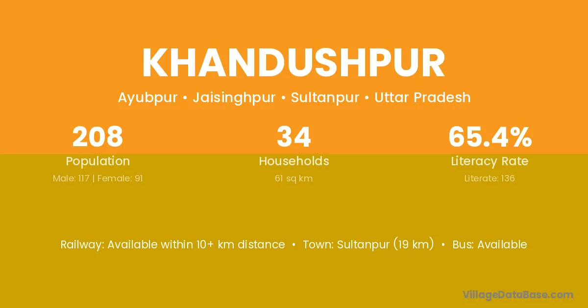 Sultanpur (19 km) is the nearest town to Khandushpur village for major economic activities and is located approximately 19 km away.