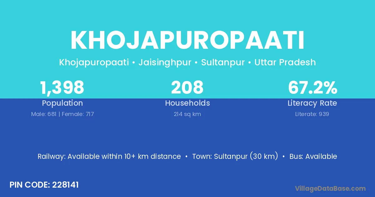Sultanpur (30 km) is the nearest town to Khojapuropaati village for major economic activities and is located approximately 30 km away.