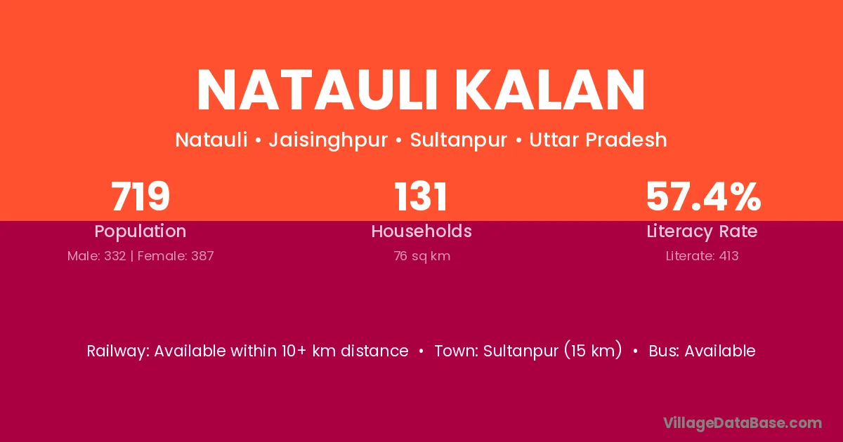 Sultanpur (15 km) is the nearest town to Natauli Kalan village for major economic activities and is located approximately 15 km away.