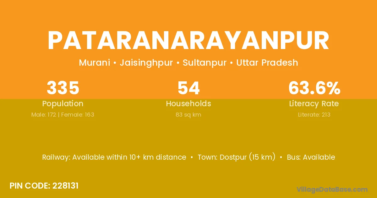 Dostpur (15 km) is the nearest town to Pataranarayanpur village for major economic activities and is located approximately 15 km away.
