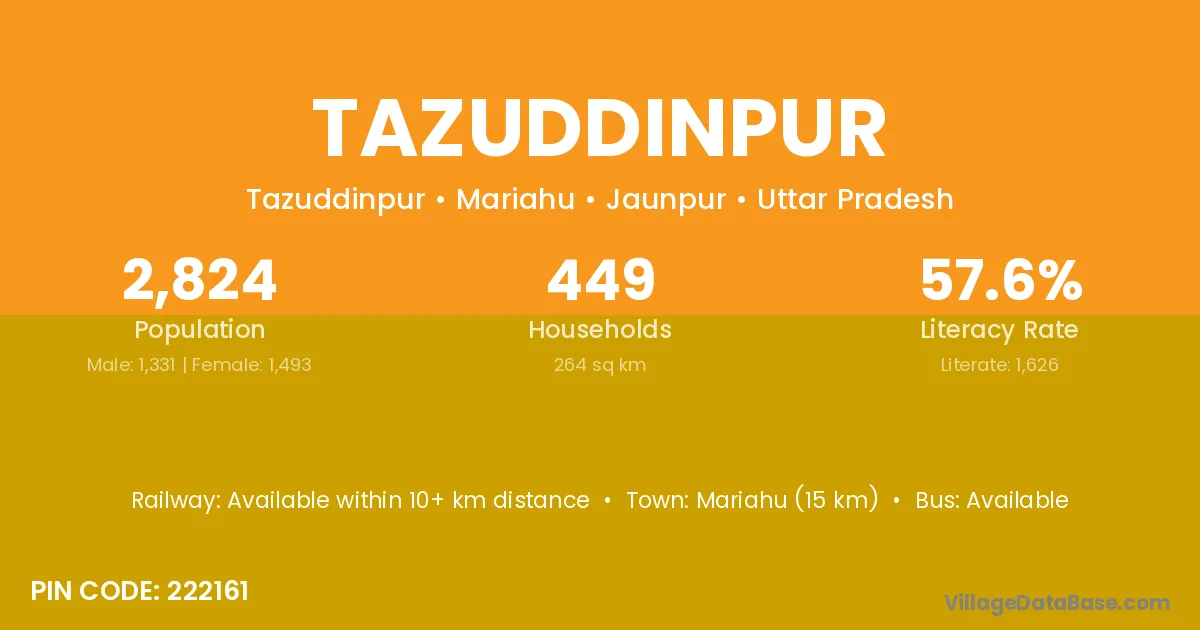 Sultanpur (42 km) is the nearest town to Tazuddinpur village for major economic activities and is located approximately 42 km away.