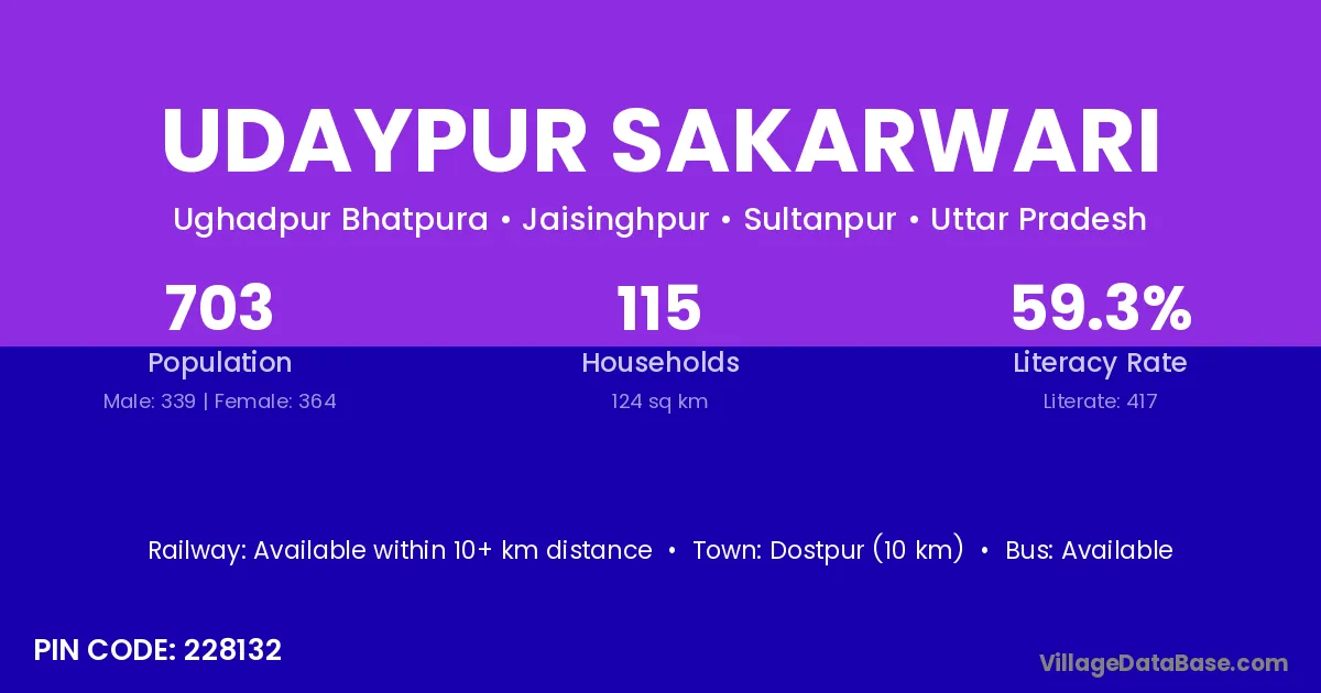Udaypur Sakarwari village has a total population of 703 people, of which 339 are males and 364 are females.