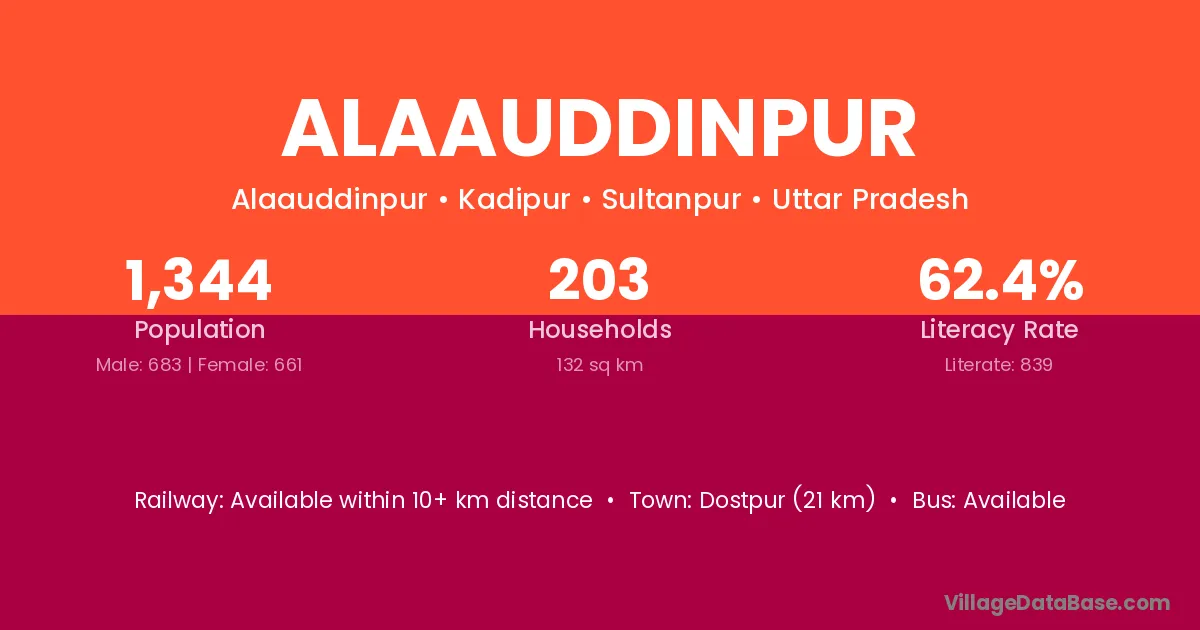 Alaauddinpur village has a total population of 1,344 people, of which 683 are males and 661 are females.