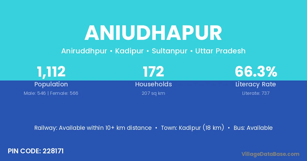 Kadipur (18 km) is the nearest town to Aniudhapur village for major economic activities and is located approximately 18 km away.