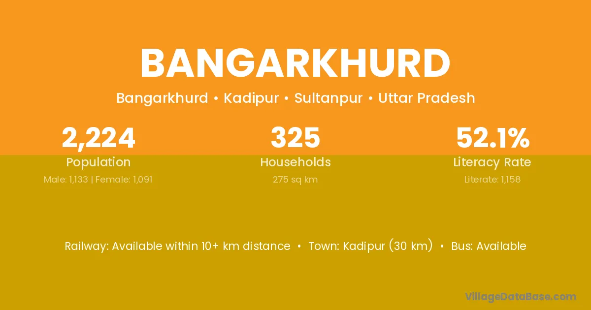Kadipur (30 km) is the nearest town to Bangarkhurd village for major economic activities and is located approximately 30 km away.