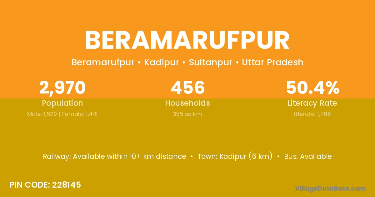 Kadipur (6 km) is the nearest town to Beramarufpur village for major economic activities and is located approximately 6 km away.