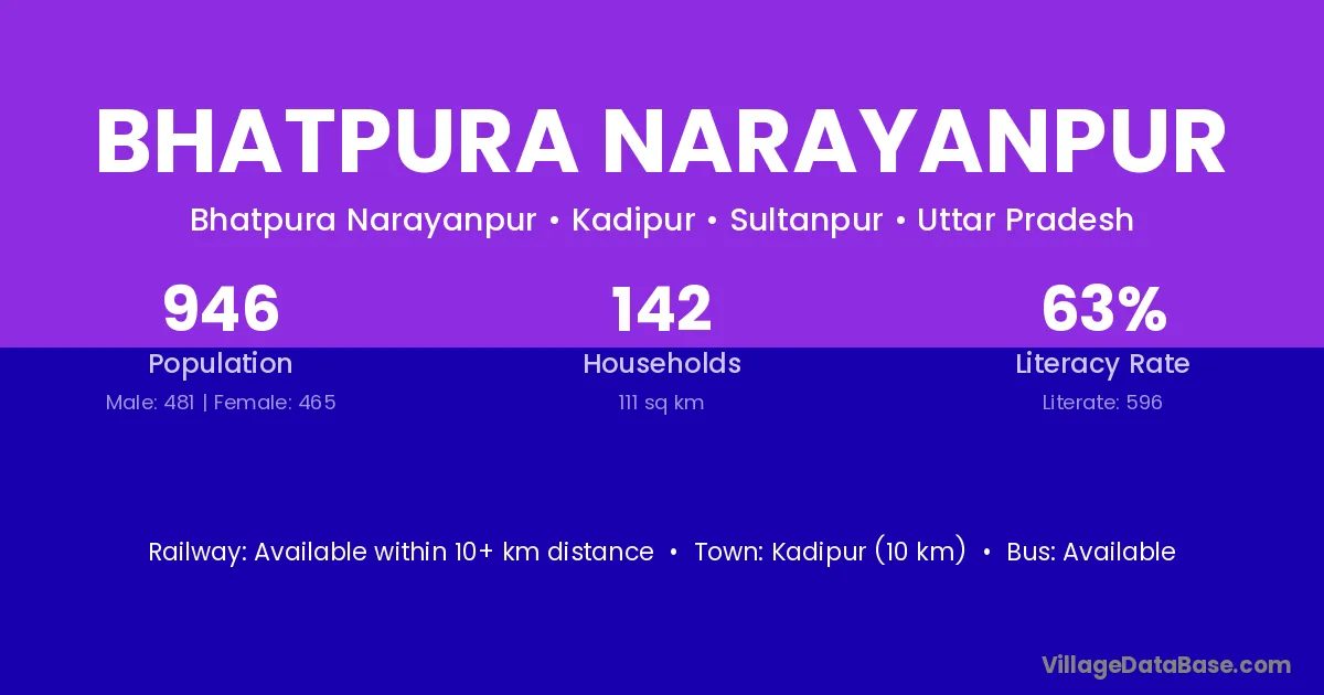 Kadipur (10 km) is the nearest town to Bhatpura Narayanpur village for major economic activities and is located approximately 10 km away.
