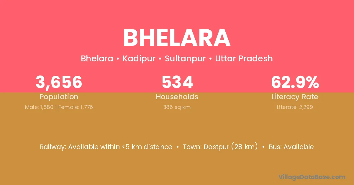 Dostpur (28 km) is the nearest town to Bhelara village for major economic activities and is located approximately 28 km away.