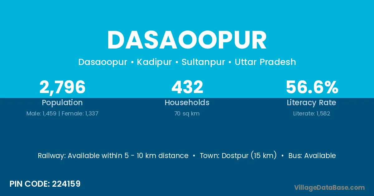 Dasaoopur village has a total population of 2,796 people, of which 1,459 are males and 1,337 are females.