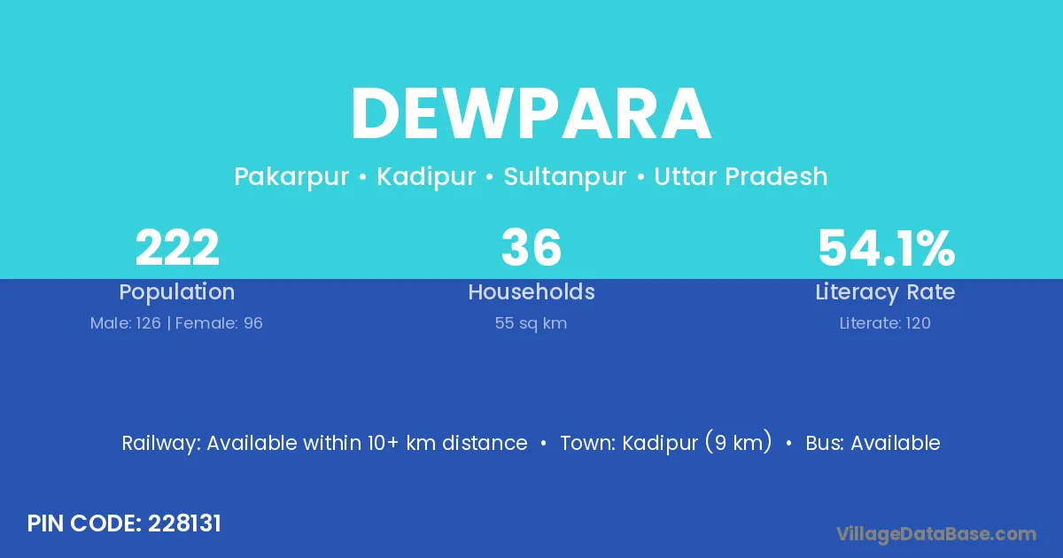 Kadipur (9 km) is the nearest town to Dewpara village for major economic activities and is located approximately 9 km away.