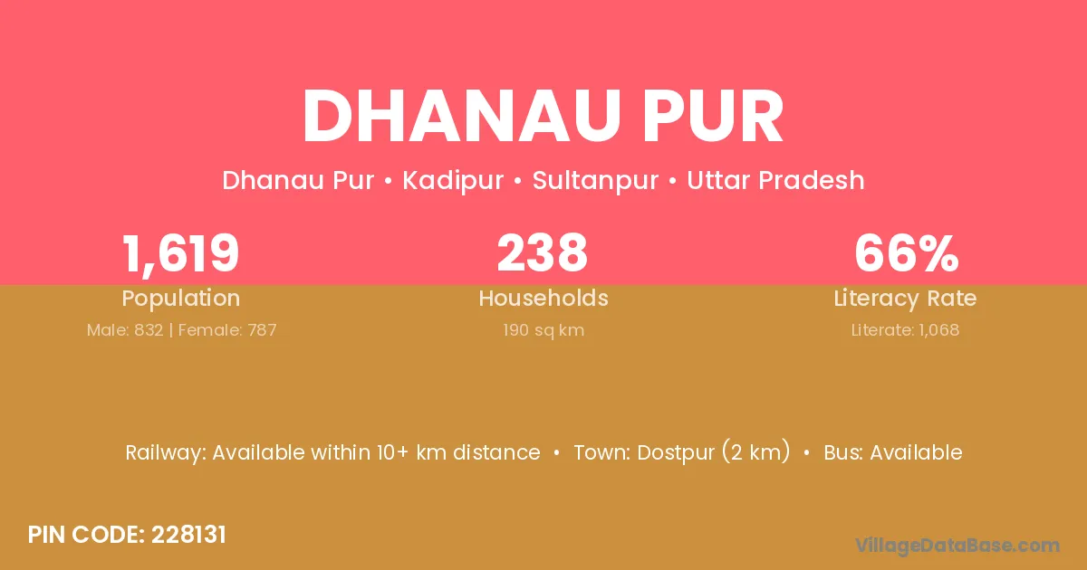 Dhanau Pur village has a total population of 1,619 people, of which 832 are males and 787 are females.