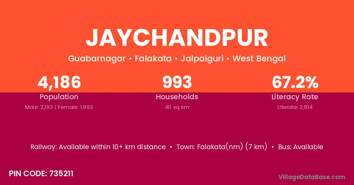 Dostpur (5 km) is the nearest town to Jaychandpur village for major economic activities and is located approximately 5 km away.