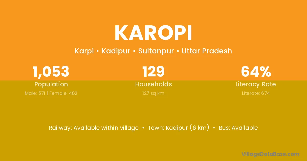 Kadipur (6 km) is the nearest town to Karopi village for major economic activities and is located approximately 6 km away.