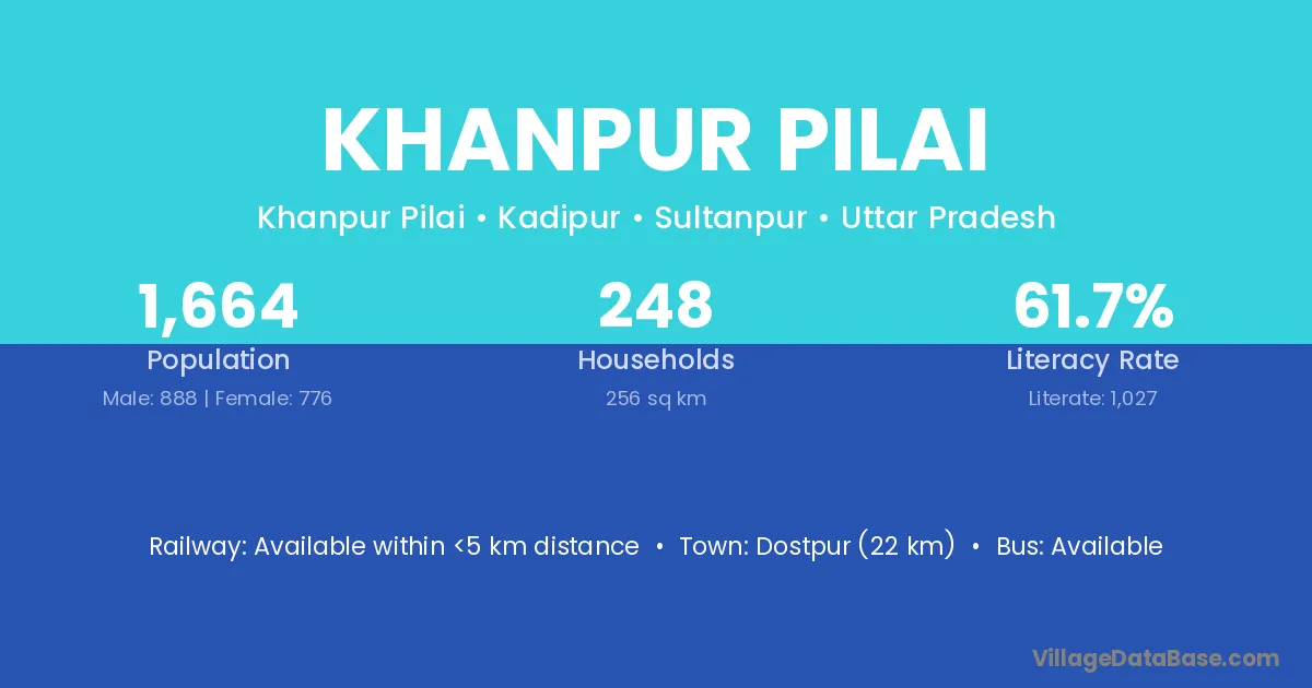 Dostpur (22 km) is the nearest town to Khanpur Pilai village for major economic activities and is located approximately 22 km away.