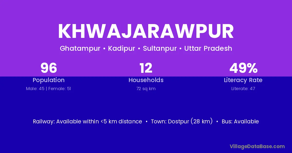 Khwajarawpur village has a total population of 96 people, of which 45 are males and 51 are females.
