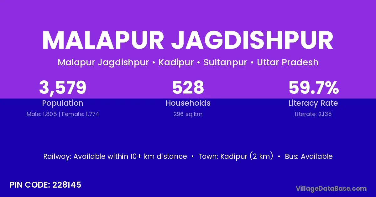 Kadipur (2 km) is the nearest town to Malapur Jagdishpur village for major economic activities and is located approximately 2 km away.