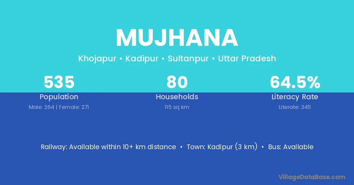 Mujhana village has a total population of 535 people, of which 264 are males and 271 are females.
