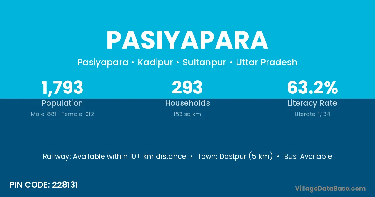 Dostpur (5 km) is the nearest town to Pasiyapara village for major economic activities and is located approximately 5 km away.
