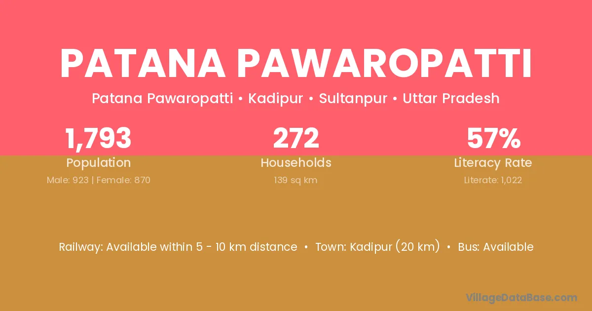 Kadipur (20 km) is the nearest town to Patana Pawaropatti village for major economic activities and is located approximately 20 km away.