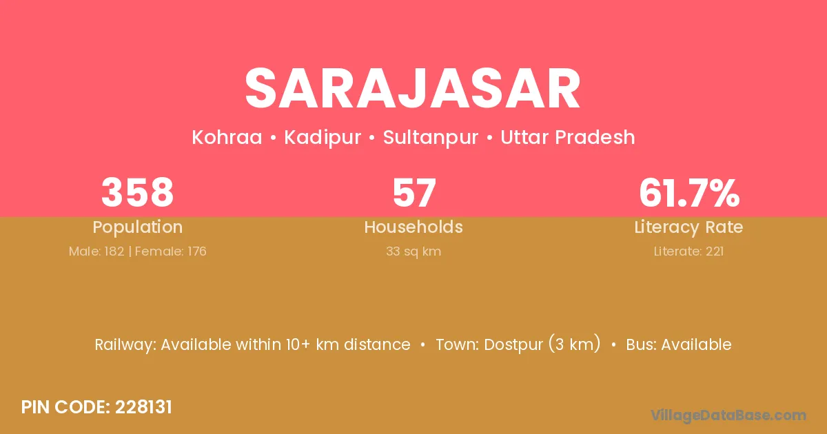 Dostpur (3 km) is the nearest town to Sarajasar village for major economic activities and is located approximately 3 km away.