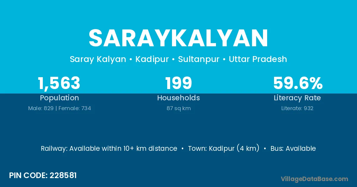 Kadipur (4 km) is the nearest town to Saraykalyan village for major economic activities and is located approximately 4 km away.