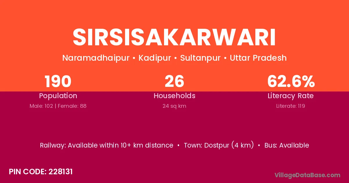 Dostpur (4 km) is the nearest town to Sirsisakarwari village for major economic activities and is located approximately 4 km away.