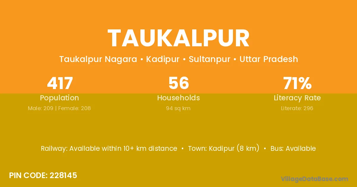 Kadipur (8 km) is the nearest town to Taukalpur village for major economic activities and is located approximately 8 km away.