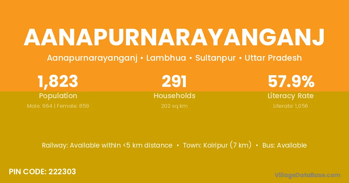 Aanapurnarayanganj village has a total population of 1,823 people, of which 964 are males and 859 are females.