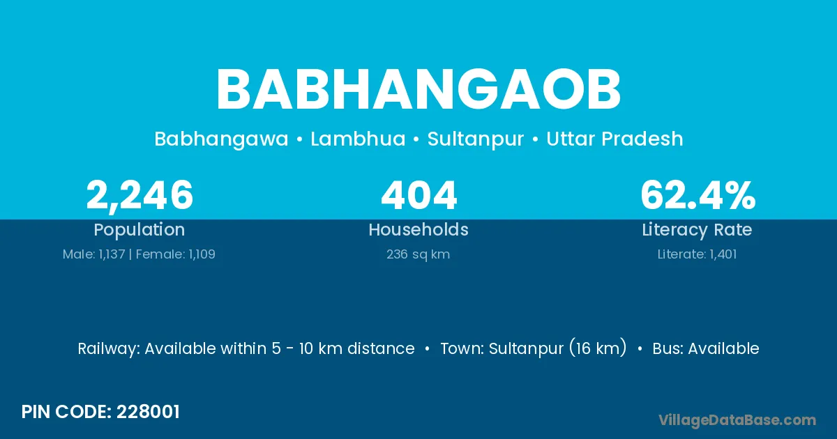 Sultanpur (16 km) is the nearest town to Babhangaob village for major economic activities and is located approximately 16 km away.