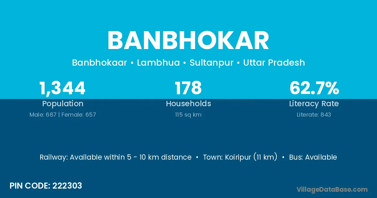 Koiripur (11 km) is the nearest town to Banbhokar village for major economic activities and is located approximately 11 km away.