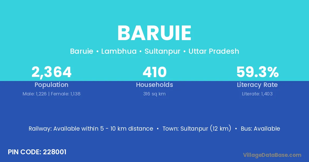 Sultanpur (12 km) is the nearest town to Baruie village for major economic activities and is located approximately 12 km away.