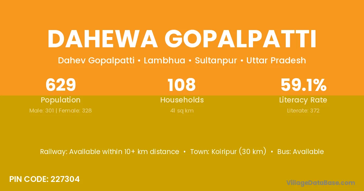 Dahewa Gopalpatti village has a total population of 629 people, of which 301 are males and 328 are females.