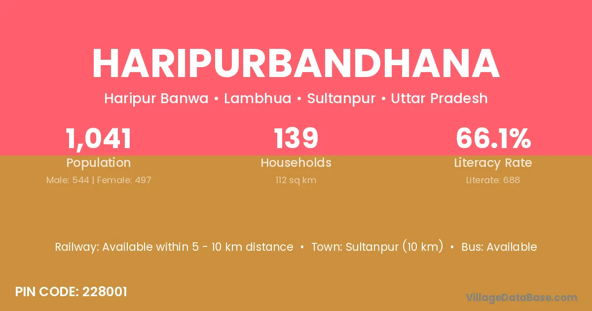 Haripurbandhana village is located in the Lambhua Tehsil of the Sultanpur district in Uttar Pradesh .
